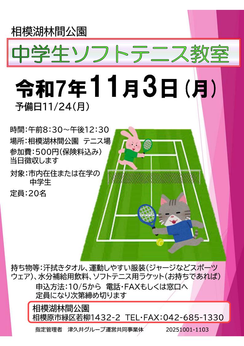 中学生ソフトテニス教室11/3開催 参加者募集!