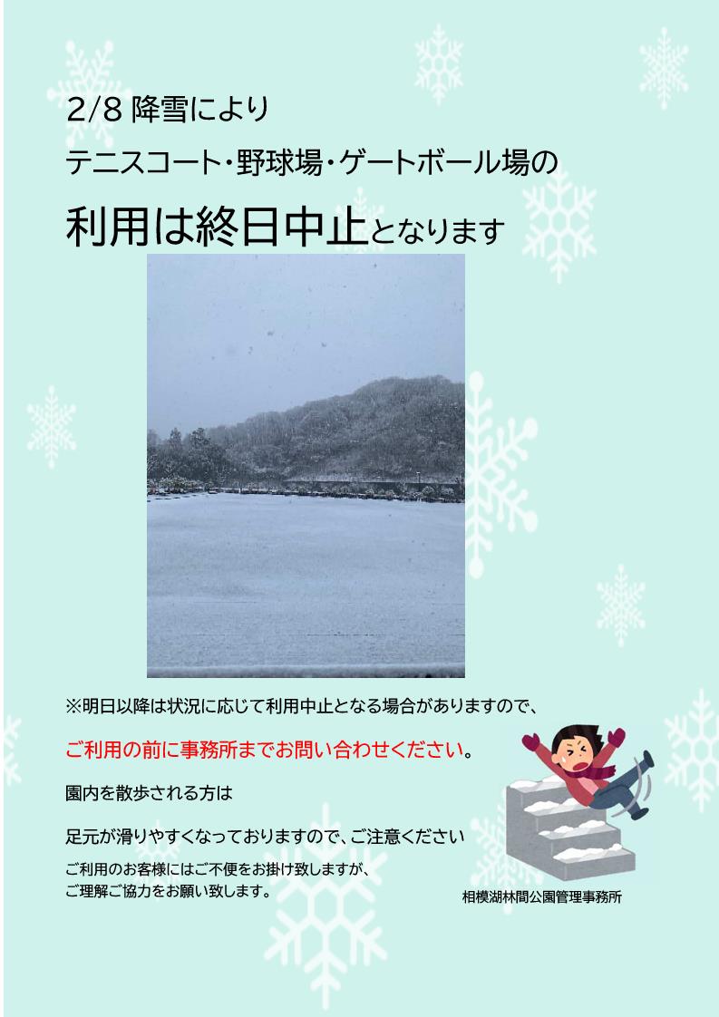 2/8 降雪による施設利用中止のお知らせ